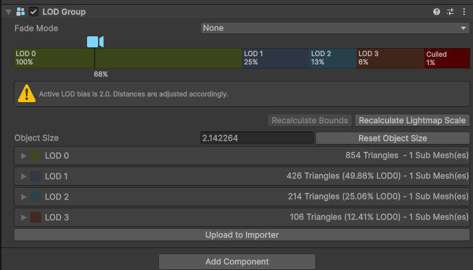 | Very detailed | LOD0 | Highest poly | When the camera is close |